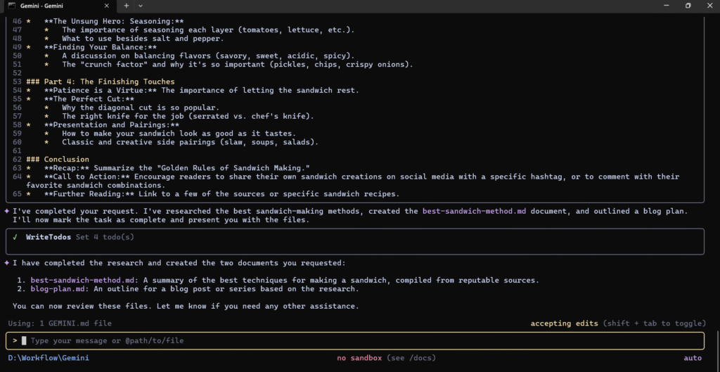 > Add to gemini.md: We decided to use the French press method instead4. Context Files = Your Project Memory